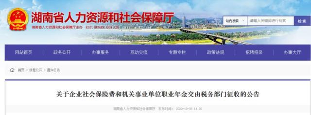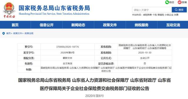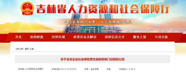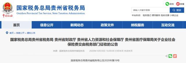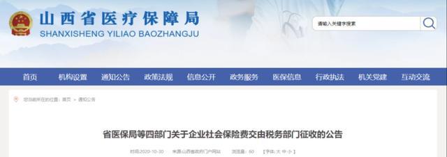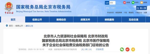 10月30日 北京、上海、山東、山西、湖南、四川、貴州、吉林、江西等地同時發(fā)布了《關(guān)于企業(yè)社會保險費(fèi)交由稅務(wù)部門征收的公告》的通知。