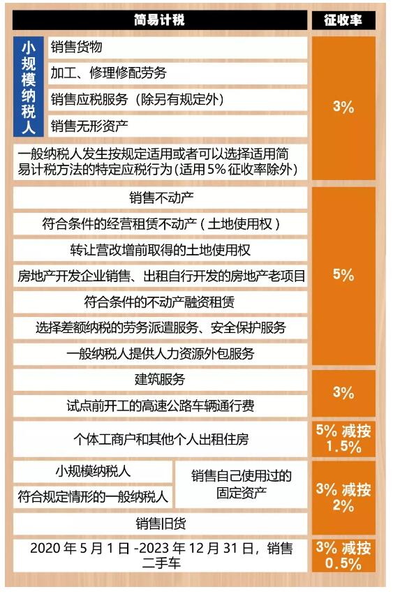 小規(guī)模及適用簡易計稅的一般納稅人增值稅稅率表