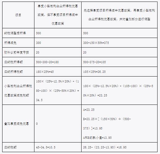 ▲在例1、例2情形下,企業應選擇同時享受項目所得減半和小型微利企業優惠政策。